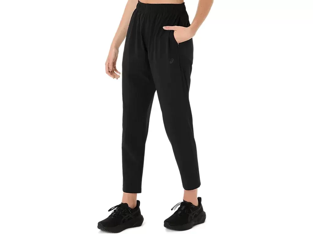 Sweat wicking and comfortable, this stretch woven pant is designed for warm ups and cool downs.