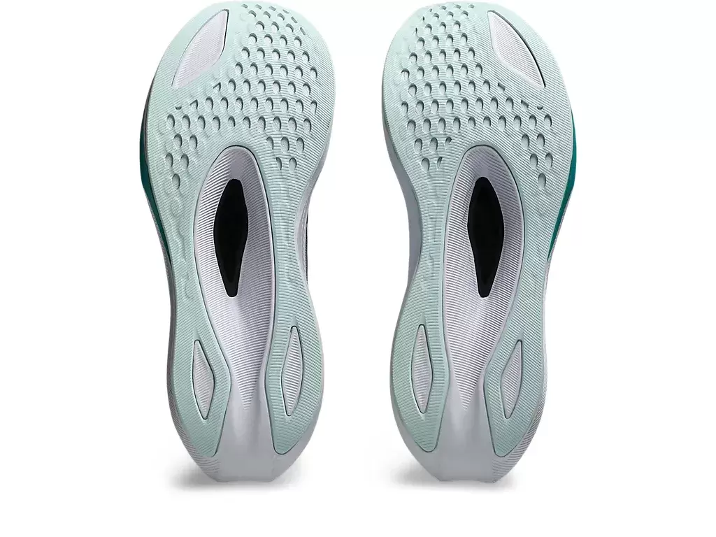 A sculpted carbon plate is designed to help improve stability and propel your foot forward. This helps create a smoother and more propulsive experience during the toe-off phase of your stride.​